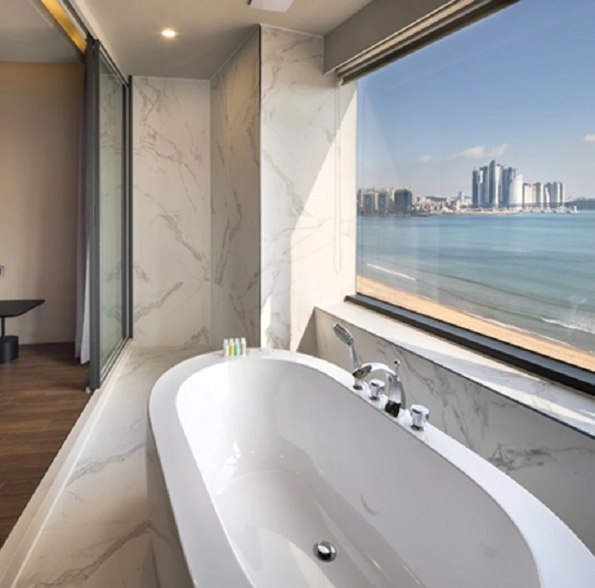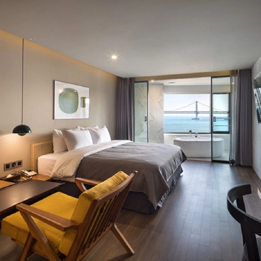 넓은 창이 있어 광안대교와 환상적인 바다 전망을 함께 만끽할 수 있어 인기가 높다. 객실 내부에는 퀸 베드와 책상, 티 테이블, 안락의자, 욕조 등이 놓여 있음에도 널찍해 편안하게 휴식을 취할 수 있다.