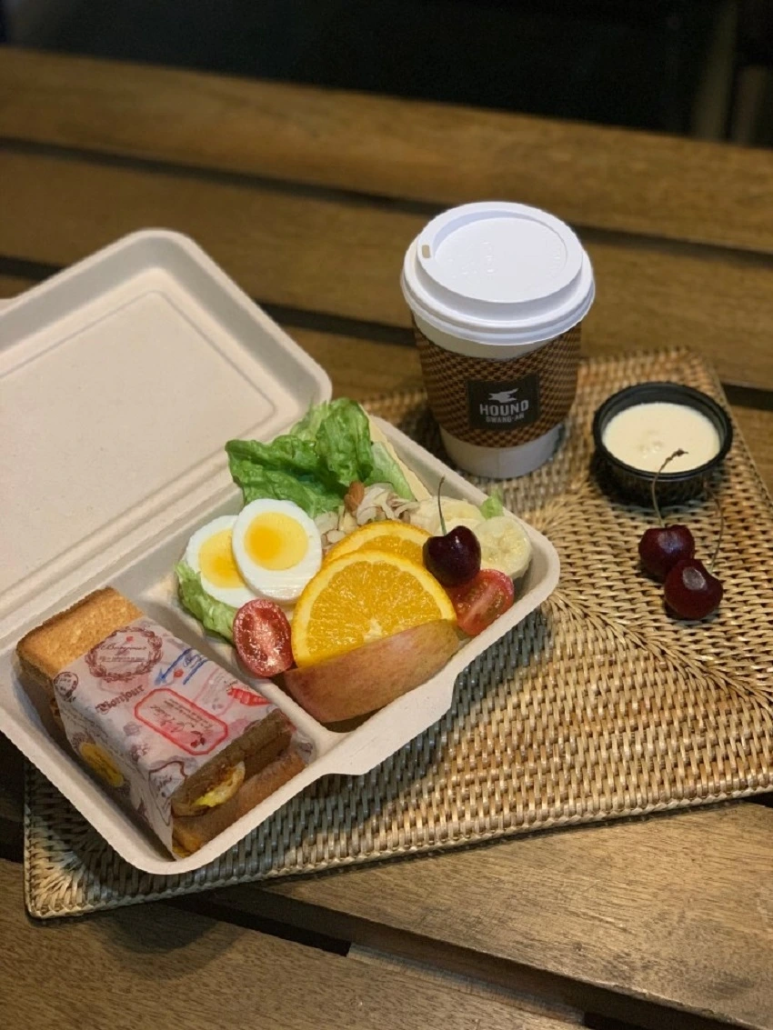 아침식사는 룸서비스 형태로 제공되며, 아침 8시 30분에서 9시 30분 사이에 샌드위치, 샐러드, 과일, 음료 등 준비돼 있다. 객실에서 드셔도 되고, 도시락 형태로 포장돼 있으니 라운지나 해변이나 어디서든지 먹을 수 있다.