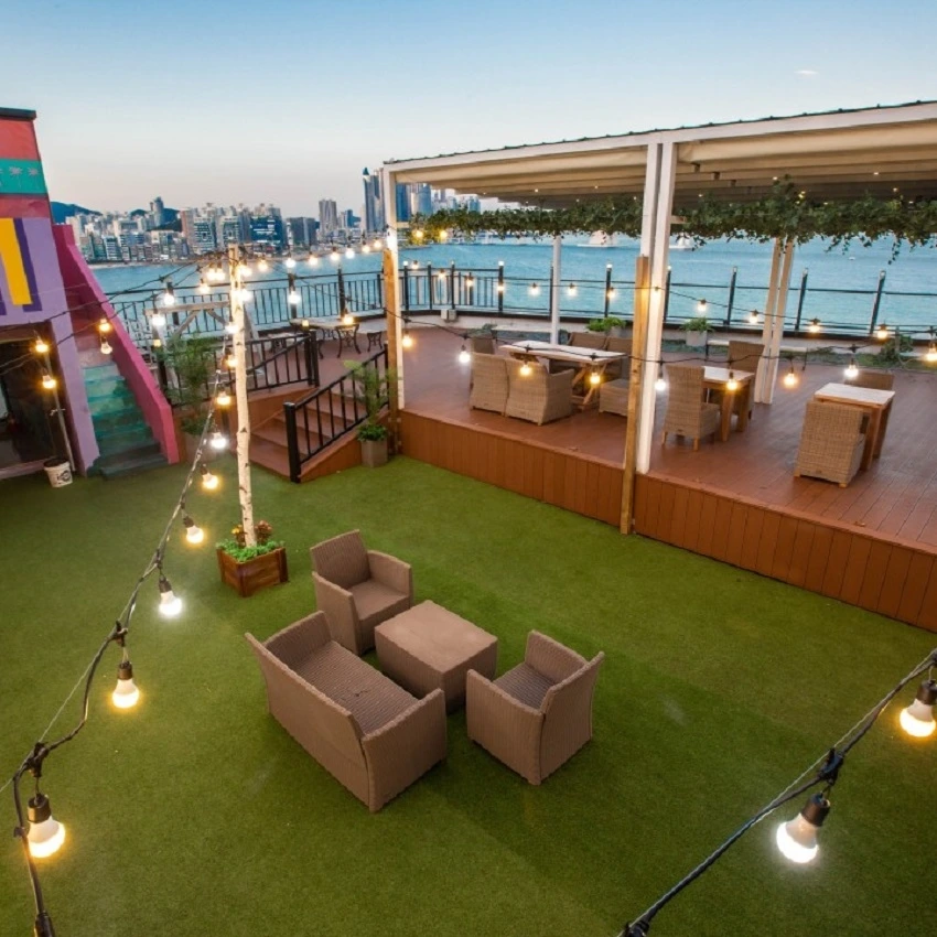 부대시설로는 광안 대교가 한눈에 보이는 루프탑 테라스가 준비돼 있다. 낮과 밤 다른 매력을 즐길 수 있는 공간이다! 낮에는 탁 트인 해변과 아기자기하게 꾸며진 루프탑 공간을 즐겨보고, 밤에는 은은하게 반짝이는 조명과 함께 야경을 감상해 보자! 이와 함께 이탈리안 레스토랑도 운영된다.
