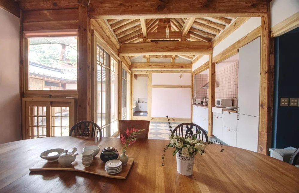 혜화1938은 전통과 현대의 조화를 느껴지는 곳이다. 고즈넉함이 느껴지는 한옥 골조 위에 새로운 색을 입혀 신선함을 느낄 수 있는데, 2개의 침실과 넓은 거실, 다이닝 공간까지.