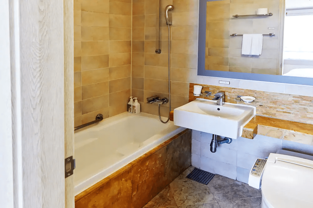 스위트 객실 욕실에는 샤워 부스와 욕조, 비데가 설치돼 있고, 리조트 타입이다 보니, 어메니티는 샴푸와 샤워젤, 비누, 수건, 드라이기만 제공된다. 칫솔과 면도기, 세안제 등은 따로 챙겨 와야 한다.