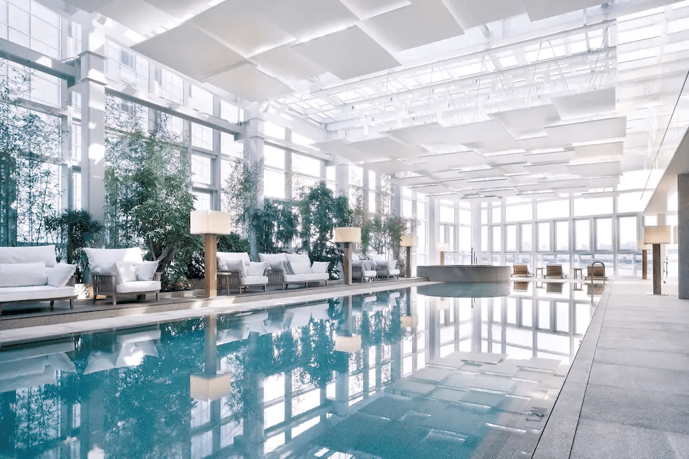 수영장은 파크하얏트 부산 투숙객 모두에게 무료로 운영 중이다. 객실에서 환복 후 가운을 입고 이동하는 걸 추천한다. 수모를 필수로 착용해야 하는데, 깜박했다면 4층 데스크에서 구매도 가능하다.