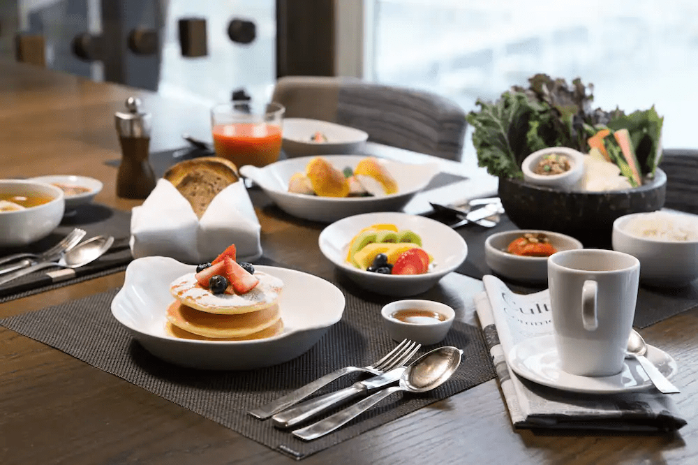조식은 파크하얏트 부산 32층 다이닝룸 레스토랑에서 오전 6시 30분부터 10시 30분까지 운영된다. 샐러드 바와 단품 메뉴 주문이 가능한 세미 뷔페로 제공된다. 아침 8시 전에 입장하면 20% 할인되니, 서둘러 보자.