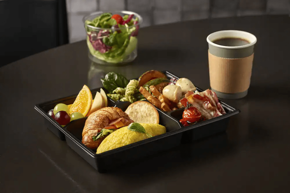 요즘 대세는 룸콕 호캉스! 만약, 레스토랑 이용이 살짝 불편하다면 TO-GO 도시락을 이용해보자. 본인이 원하는 뷔페 메뉴를 도시락에 담아 올 수 있다.