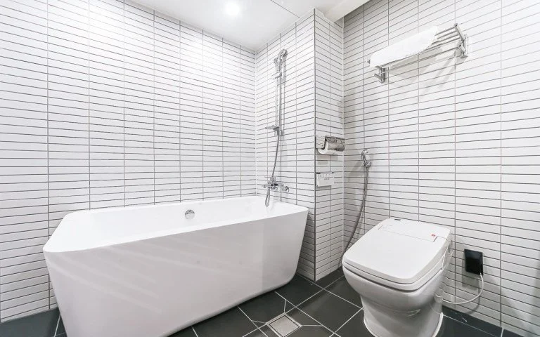 어메니티는 샴푸, 컨디셔너, 바디워시, 바디로션, 칫솔, 치약 등이 준비돼 있다. 객실에 따라 샤워부스 / 욕조가 제공된다.