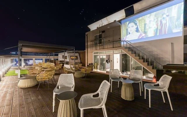 브라운도트호텔의 하이라이트 공간! 로맨틱 오션뷰 루프탑이 있는데, 예쁜 포토존과 카라반 카페, 저녁에는 무비타임까지 즐길 수 있어 매력이 넘치는 포항 숙소로 항상 인기가 넘치는 곳이다.