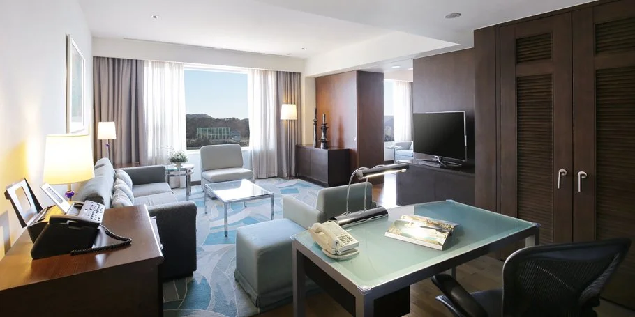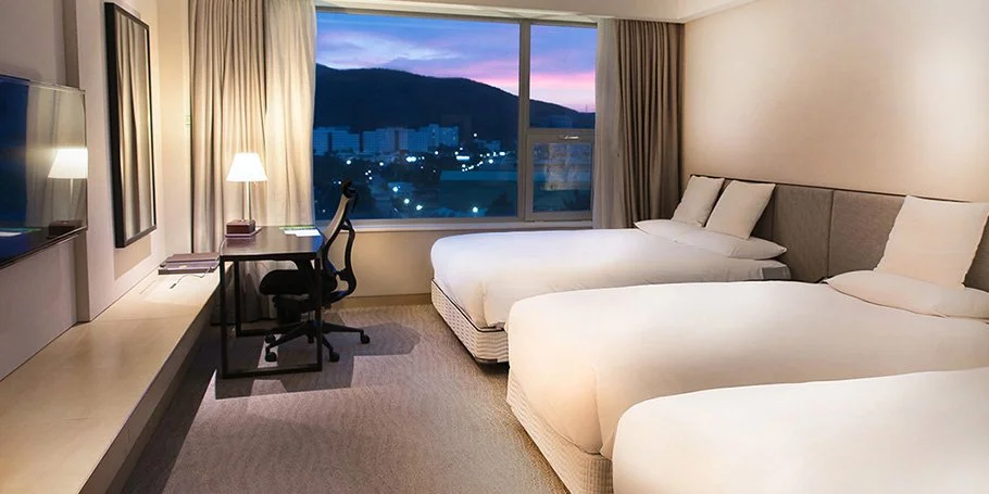 거제 삼성호텔 패밀리트윈 룸은 4인 가족이 머무르기 적합한 객실이다. 널찍한 킹사이즈 베드와 싱글 침대 2개로 구성돼 편안한 잠자리를 보장한다. 객실에서는 하버뷰 또는 마운틴뷰를 조망할 수 있다.