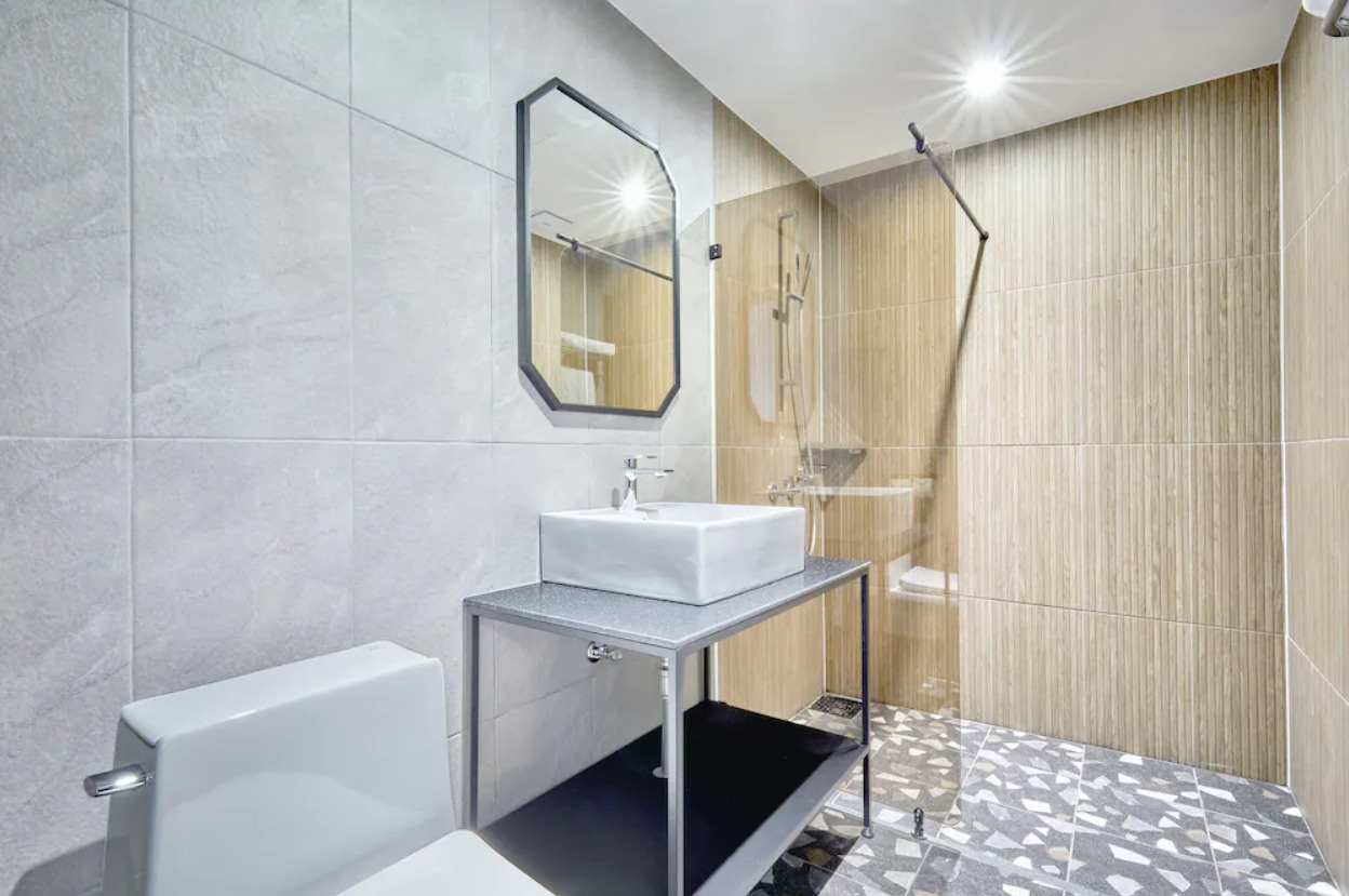 욕실은 샤워부스가 설치된 형태로 비누, 샴푸, 바디워시, 슬리퍼, 화장지, 타월, 드라이기가 준비된다. 그밖에 무료 생수와 티백, 전기포트가 비치돼 있다. 단, 환경보호 차원에서 일회용품인 치약과 칫솔은 제공되지 않는다. 개별적으로 챙겨 오거나 1층 편의점에서 구매하시면 될 거 같다.