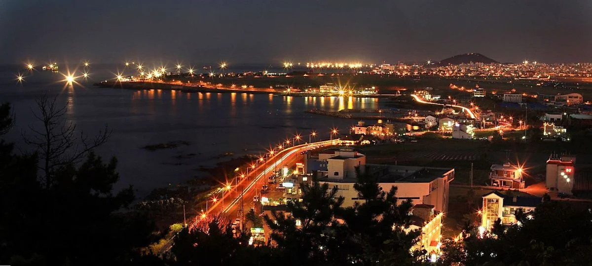 무지개 해안도로, 키세스 포토존으로 유명한 도두봉! 정상에서는 한라산과 바다를 볼 수 있고, 밤이 되면 야경도 이렇게 아름답다. 제주 그라벨호텔에서 차로 8분 거리로 가까워 더욱 좋다.