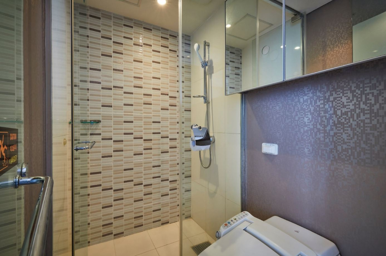 샴푸, 바디워시, 비누, 수건, 화장지, 슬리퍼 등이 비치돼 있다. 치약과 칫솔은 제공되지 않는데, 대신 로비에 자판기가 놓여 있어 언제든지 편히 구매할 수 있다. 1층 편의점에서도 더 저렴하게 구매할 수 있으니 영업시간 내에 구매하는 걸 추천한다.