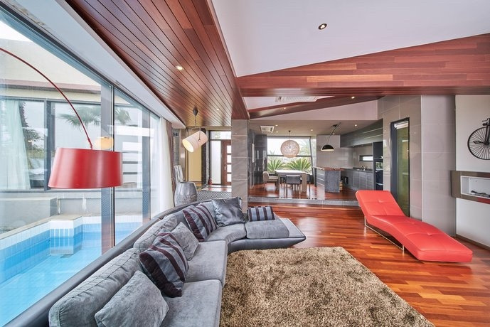객실은 12가지 타입으로 다양하게 준비돼 있는데, 타입에 따라 자쿠지 또는 개별 수영장이 준비되어 프라이빗한 여름휴가 숙소로 제격이다. 부대시설로는 바다 전망의 야외 수영장과 피트니스 센터, 유료 조식이 제공되는 카페 겸 펍, 영화관 등 다양하게 준비돼 보름 살기, 한 달 살기를 해도 지루하지 않게 지낼 수 있는 숙소이다.