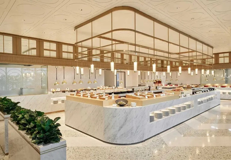 아침 식사는 2층에 있는 레스토랑 아리아에서 오전 6시 30분부터 10시까지 뷔페식으로 즐길 수 있다. 한식은 물론 양식, 일식, 중식, 디저트 등 알차게 준비된다. 특히 아이들을 위한 식판과 메뉴들도 갖춰져 있으니 든든하게 즐겨 보자!