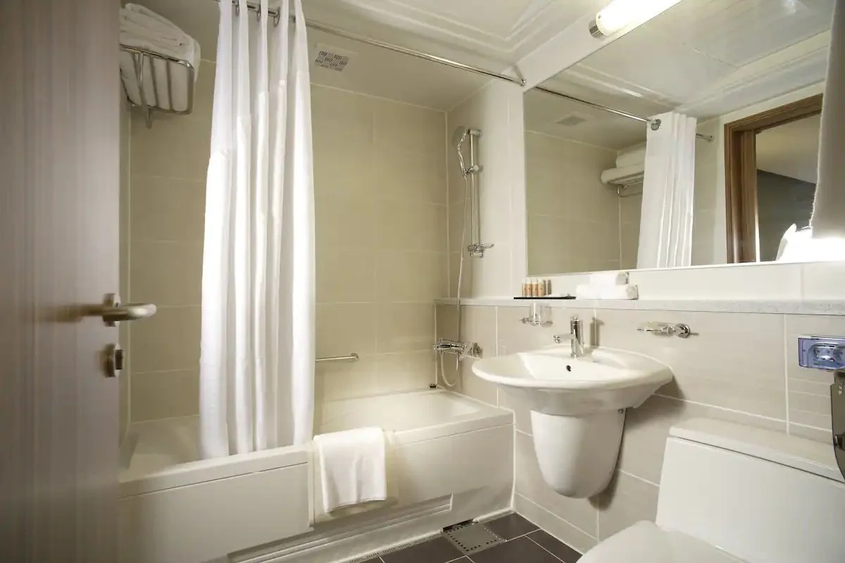 평창 호텔에는 샴푸, 린스, 샤워젤, 칫솔 세트 등이 어메니티로 구비되어 있다. 욕조도 있어 아이들을 씻길 때 편리하다.