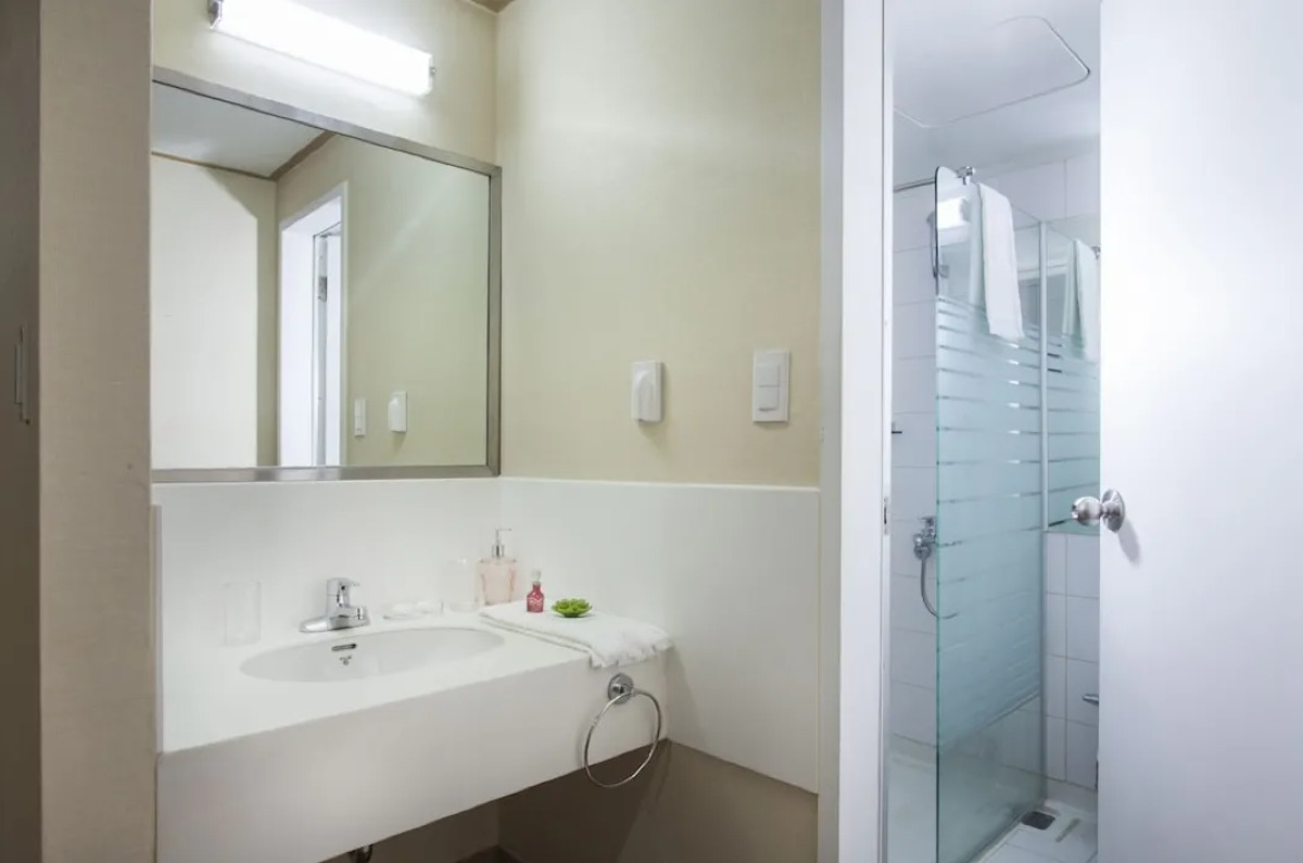세면대는 개별적으로 분리되어 있고, 욕실에는 샤워부스가 준비되어 있다. 어메니티는 샴푸와 바디워시, 수건, 헤어드라이어 등이 비치돼 있으니 치약과 칫솔, 면도기, 세안제 정도는 지참하는 편이 좋다.