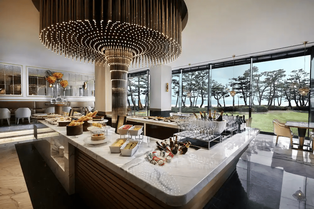 호캉스의 꽃은 클럽 라운지가 아닐까? 본래 두 곳이었던 부산 파라다이스 라운지를 통합해 현재는 신관 1층에서 운영 중이다. 조식과 티타임, 해피아워가 제공되며 49개월 이상부터 출입 가능하다. 가족 여행자에게 딱이다.