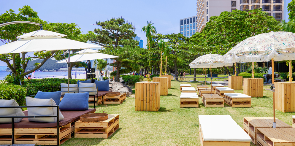 야외 가든 더 비치 라운지는 오직 여름에만 만날 수 있는 파라다이스이다. 입맛을 자극하는 이색적인 요리와 시원한 샴페인, 생맥주, 흥겨운 라이브 공연을 동시에 즐길 수 있다. 저녁 5시부터 밤 10시까지 운영하다.