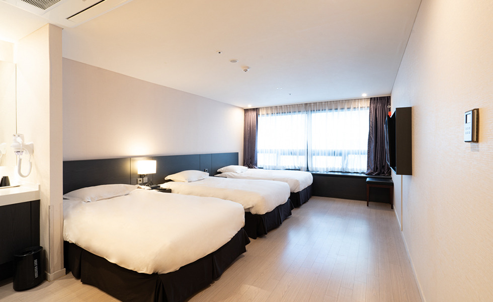 베스트웨스턴 제주 호텔 디럭스룸은 침대 타입에 따라 트윈, 패밀리 트윈, 트리플, 온돌로 나뉜다. 온돌룸을 제외한 객실은 4층~ 15층에 준비돼 있으니, 한라산과 시원한 제주 바다의 전망을 감상하고 싶다면 높은 층수를 요청해 보자!