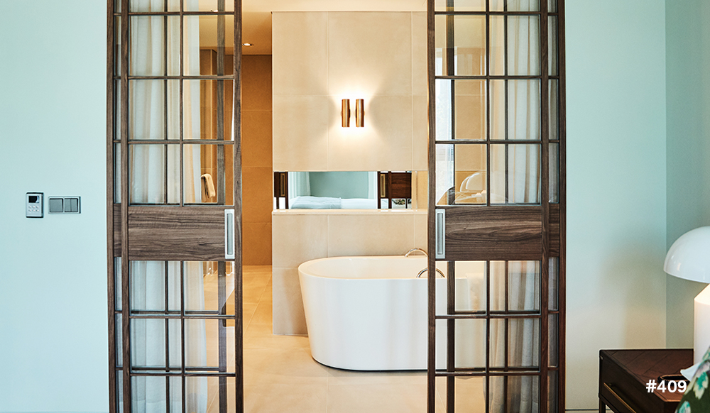 스위트룸 욕실에는 욕조와 분리형 샤워부스가 별도로 준비되어 있다. 비데도 설치되어 있는데, 어메니티로는 샴푸, 헤어 컨디셔너, 바디워시, 바디로션, 비누, 칫솔, 치약, 코튼 세트, 빗, 헤어 드라이어, 수건 등이 준비된다.