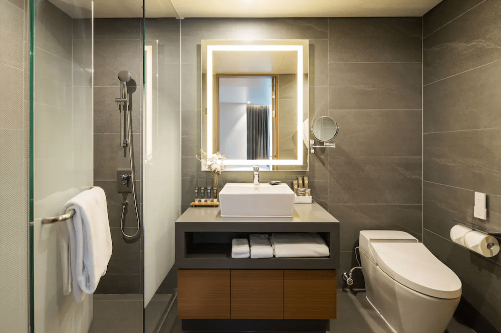 레지던스 스튜디오에는 샤워 부스, 샴푸와 컨디셔너, 샤워젤, 바디로션, 비누가 제공된다. 칫솔과 치약, 베니티 키트, 샤워캡, 위생백, 목욕 가운, 슬리퍼, 수건도 꼼꼼히 챙겨 놨다.