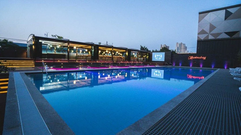 마리나베이 속초 수영장은 해수온천성분 지하 암반수로 구성돼 있다. 성인 18,000원 / 소인 15,000원에 이용할 수 있다. 평일에는 14 ~ 19시, 성수기 주말에는 2부제(오후/저녁)로 운영하고 있다.