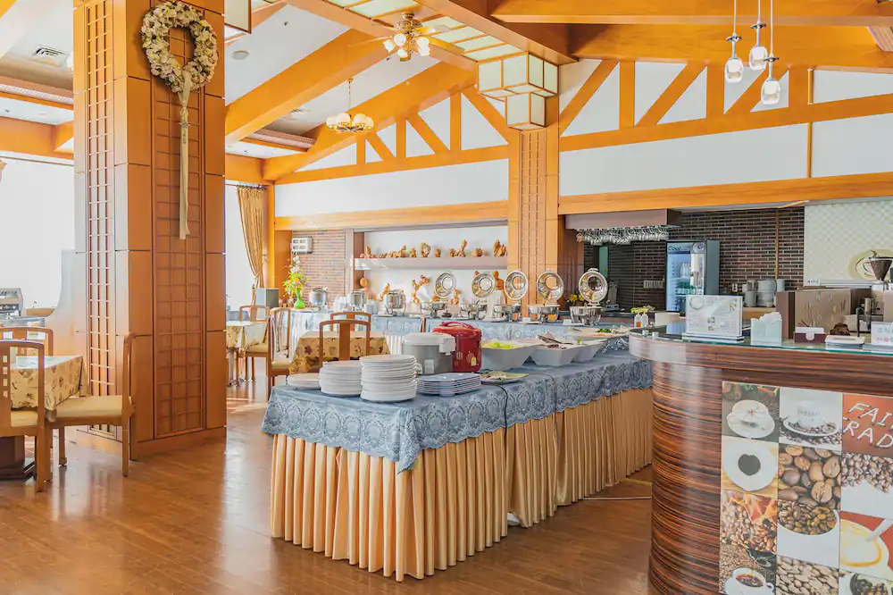 조식은 1층 레스토랑에서 오전 7시부터 10시까지 운영된다. 주중에는 단품, 주말에는 뷔페로 제공되며, 양양 토속 음식을 포함해 강황밥과 강황 두부, 콩불고기 등 면역력을 높여주는 메뉴로 구성돼 있다.