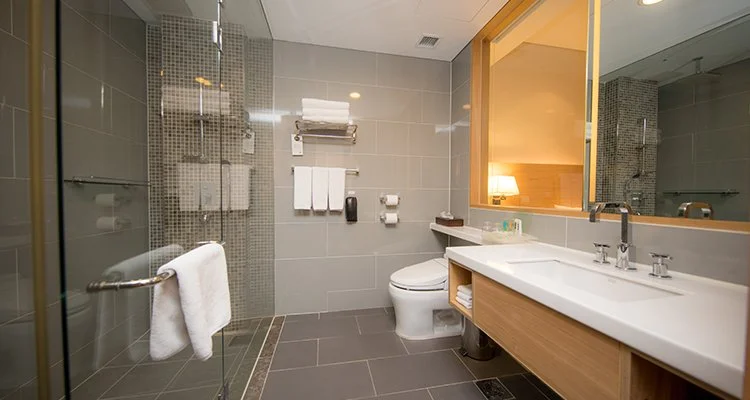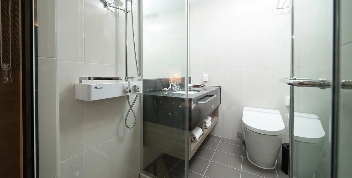 어메니티는 샴푸, 린스, 바디워시, 칫솔, 치약 등이 구비돼 있다. 럭셔리 더블룸에는 욕조도 있어 반신욕도 가능하다.