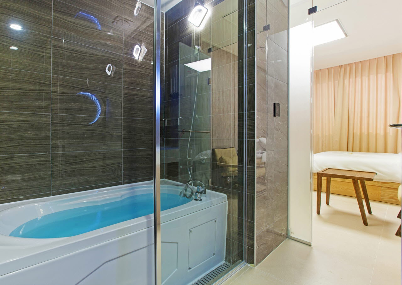 욕실에는 욕조와 샤워부스가 모두 설치되어 반신욕을 즐기며 호캉스 기분을 만끽하기에도 좋고, 어메니티로는 비누, 샴푸, 린스, 샤워젤, 샤워캡, 바디 스펀지, 양치컵, 머리빗, 헤어드라이기 등이 제공된다.