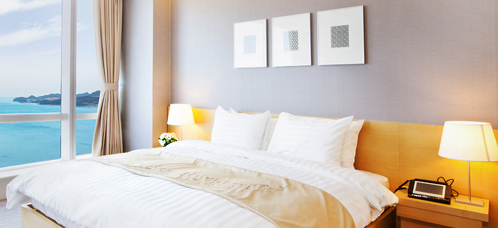 디럭스 더블룸은 오션뷰 또는 시티뷰로 구분돼 있다. 요즘 트렌디한 감성의 화이트 & 우드로 꾸며져 따뜻하고 차분한 분위기가 매력적이다. 기본형 객실이지만 널찍하게 설계되어 있어 혼자는 물론, 커플 여행에도 전혀 부족함이 없다. 내부에는 침대, TV, 테이블, 의자, 헹거, 공기 청정기, 화장대 등이 갖춰져 있다.