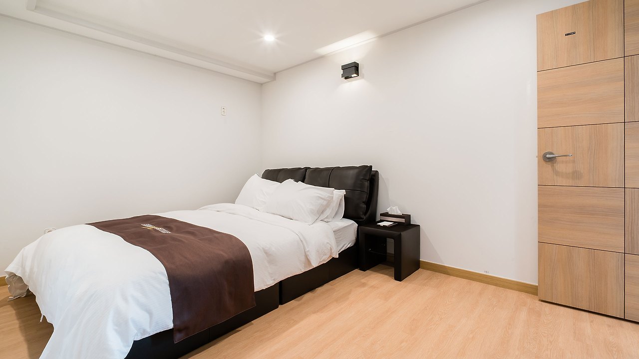 침실은 2개로 나누어져 있는데, 전 객실 숙면을 위한 메모리폼 베개와 토퍼 매트리스, 암막 커튼까지 완벽하게 갖추어져 있다. 기준 4인 정원, 최대 8인으로 표기되어 있지만, 현재는 코로나 19 확산 방지 차원에서 인원 추가는 불가능하다.