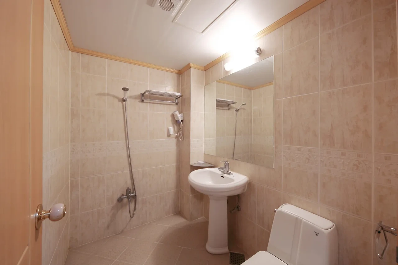 어메니티는 샴푸, 바디워시, 비누가 구비돼 있다. 필요한 개별 세면도구를 지참하시길 권장한다.