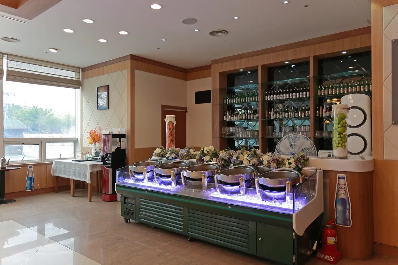 조식은 07:00 ~ 09:30 사이에 이용할 수 있다. 아메리칸 브렉 퍼스트식 뷔페가 제공되며 가격도 5,000원으로 저렴하다. 센스 있게 컵라면도 제공하고 있다.