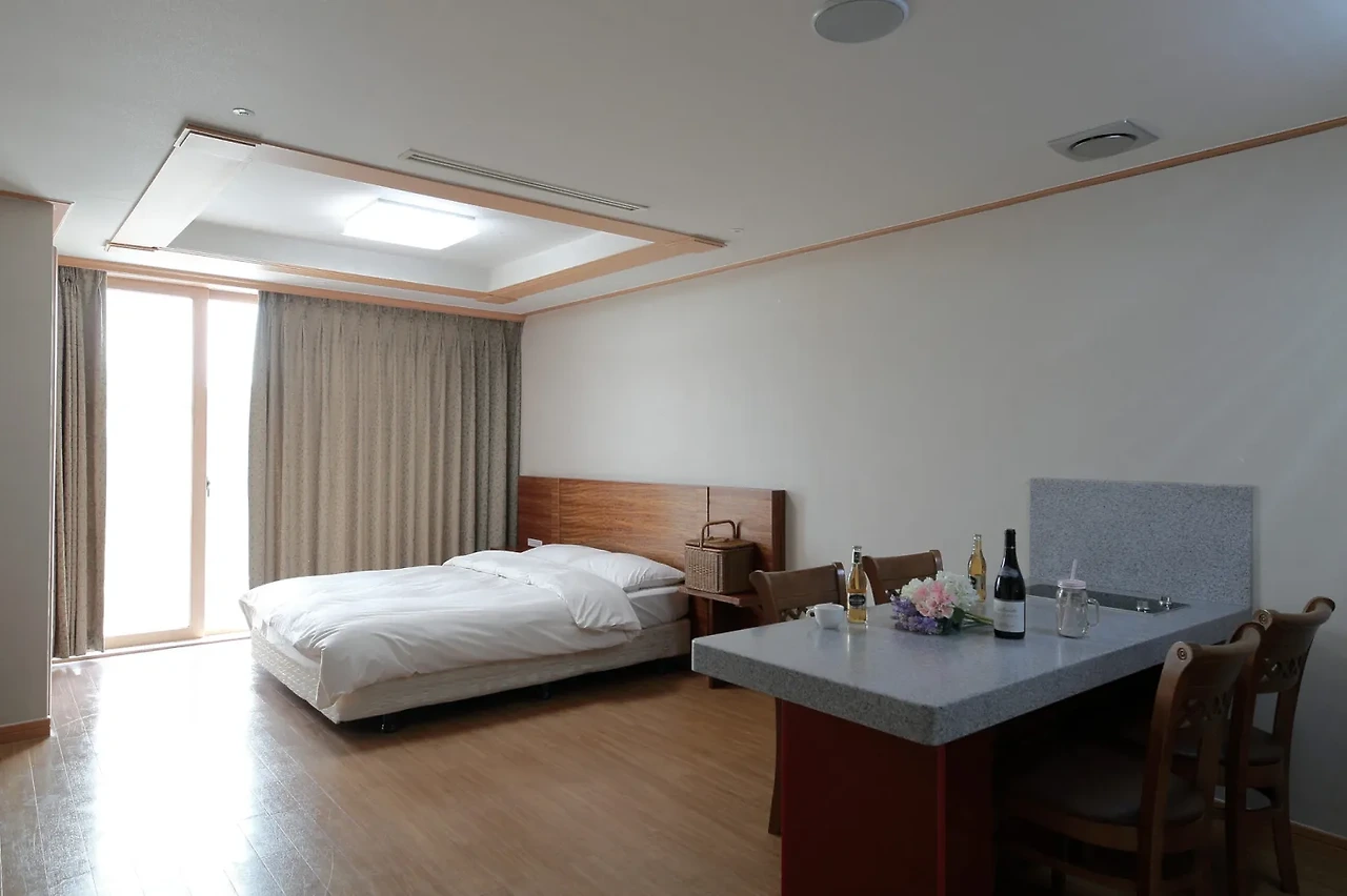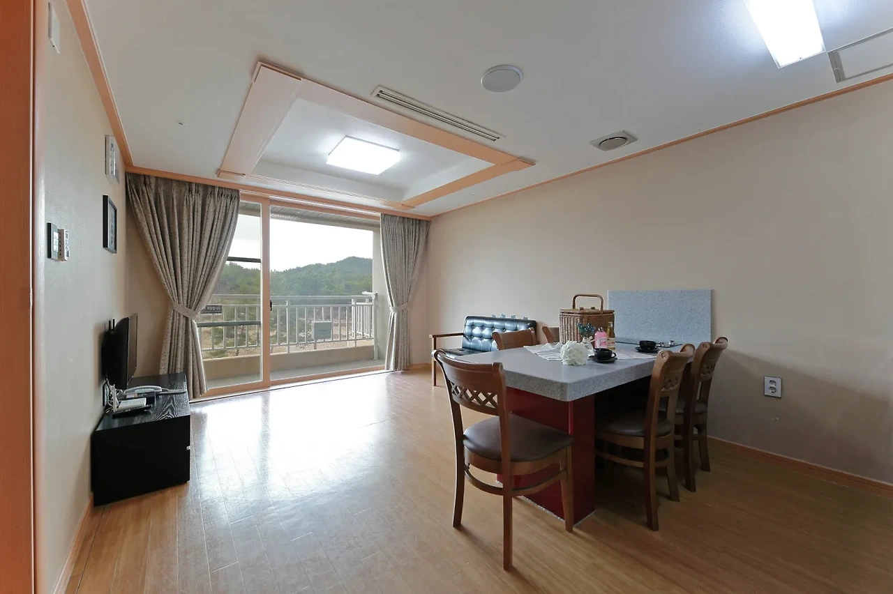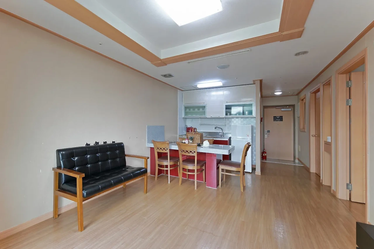 경주 성호리조트의 슈페리얼 룸은 4인 가족이 여유롭게 사용할 수 있는 객실이다. 최대 5인까지 수용이 가능한데, 거실 겸 주방과 방 2개의 구조로 편안히 쉴 수 있는 휴식 공간이 준비되어 있다.