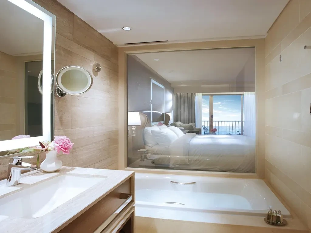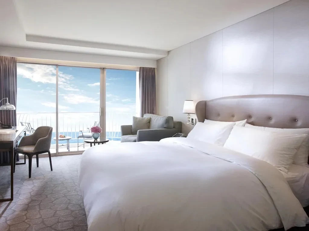 첫 번째로 소개할 부산 수영장 호텔은 ‘웨스틴 조선 부산’입니다. 디럭스 비치 룸은 객실에서 환상적인 해운대 전망을 누릴 수 있다. 해수욕장 끝에 위치해 시원하게 펼쳐진 풀 오션뷰를 감상할 수 있다는 게 큰 장점이다. 넉넉한 퀸 사이즈의 베드로 잠자리도 편안하다.
