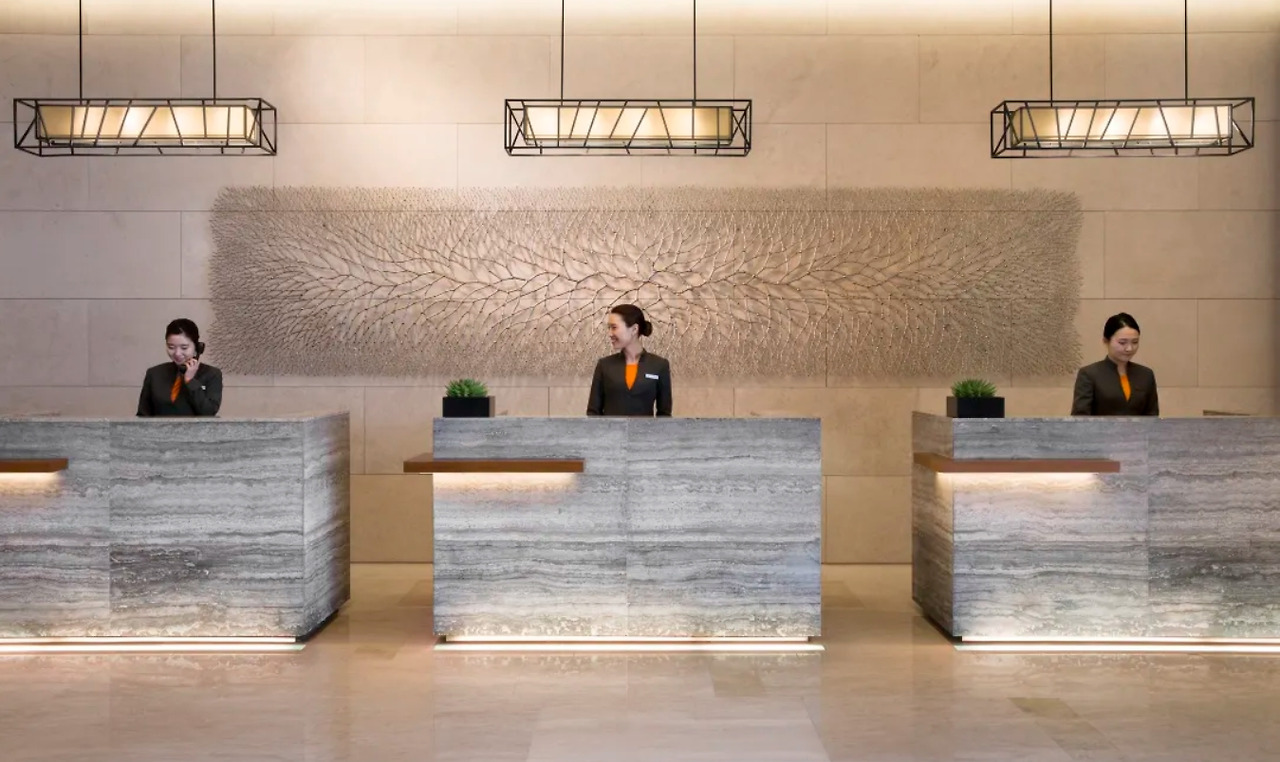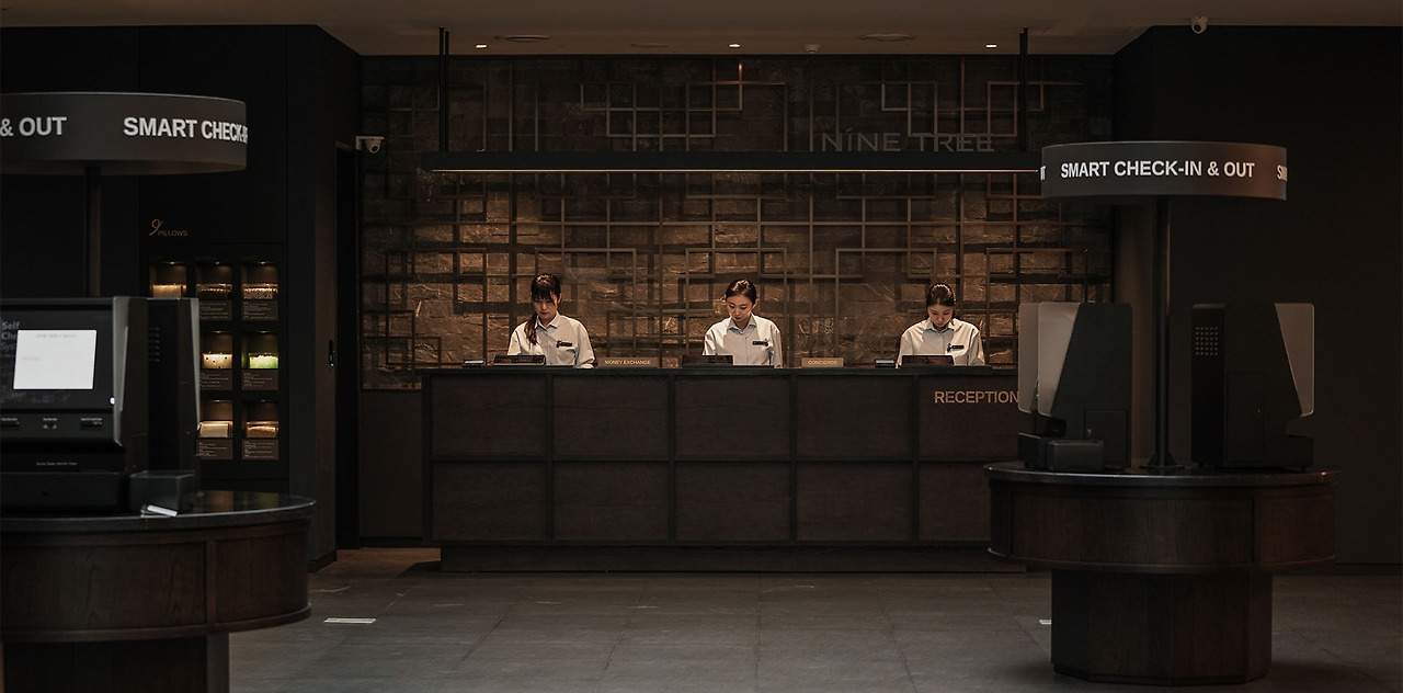 호텔 입구와 로비는 3층에 자리해 있다. 체크인은 16:00부터 가능하며, 체크아웃은 12:00까지 마무리하면 된다. 키오스크 시스템이 도입되어 있어 늦은 시간에 도착하더라도 언제든지 불편함 없이 체크인과 체크아웃이 가능하다.