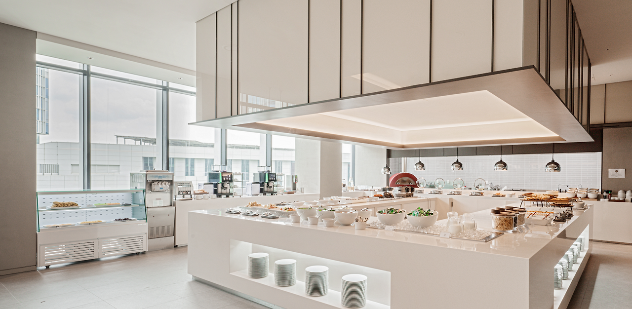 식사는 3층 로비 왼편에 마련되어 있는 마크스 레스토랑에서 평일 기준 오전 7:00~10:00 사이에 제공된다. 주말은 1시간 더 여유로운 11시까지 즐길 수 있다. 테이블 간격도 널찍하게 배치해, 안심하고 식사하면 된다.
