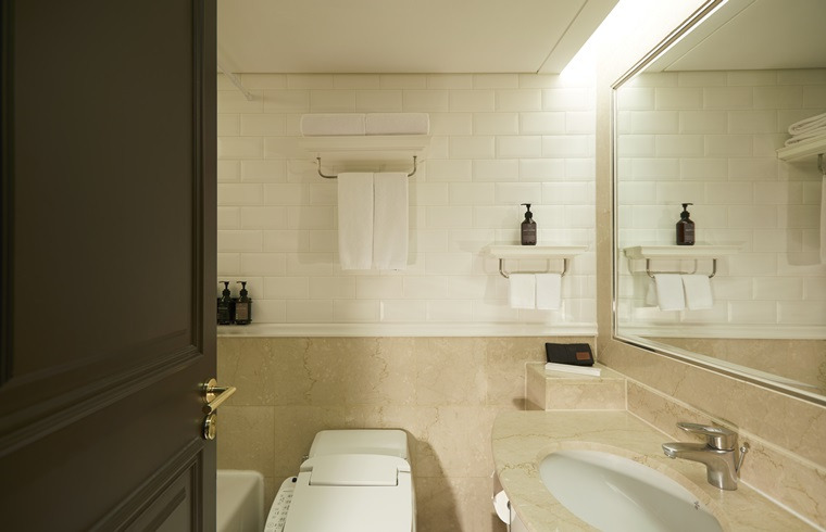 어메니티는 샴푸, 컨디셔너, 바디워시, 비누, 머리빗, 면봉이 구비돼 있다. 천연 성분을 사용하는 자연주의 화장품이라 더욱 좋다. 환경 보호를 위해 1회용 칫솔과 치약은 제공하지 않는다.