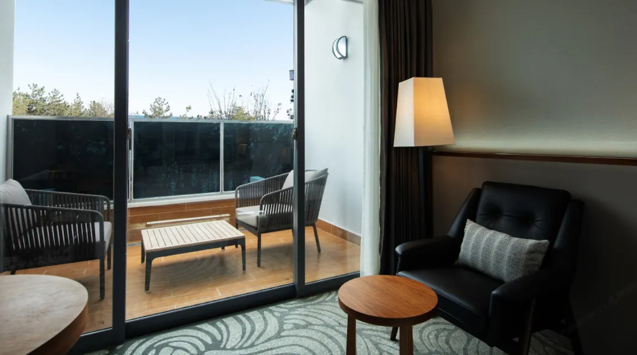 객실 내부에는 공기청정기, 티 테이블, 1인용 소파, TV, 업무용 데스크, 컴퓨터, 전기포트, 미니냉장고, 스타일러 등이 준비되어 있다.