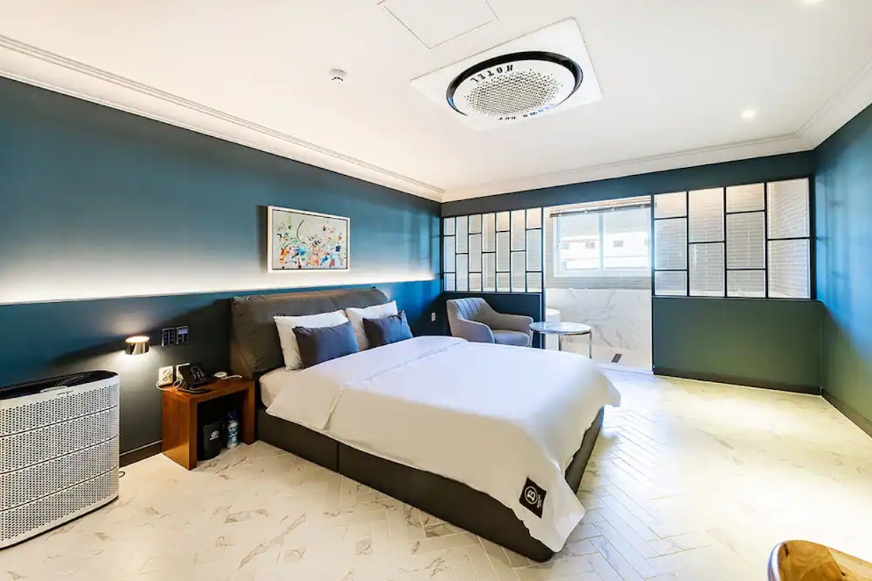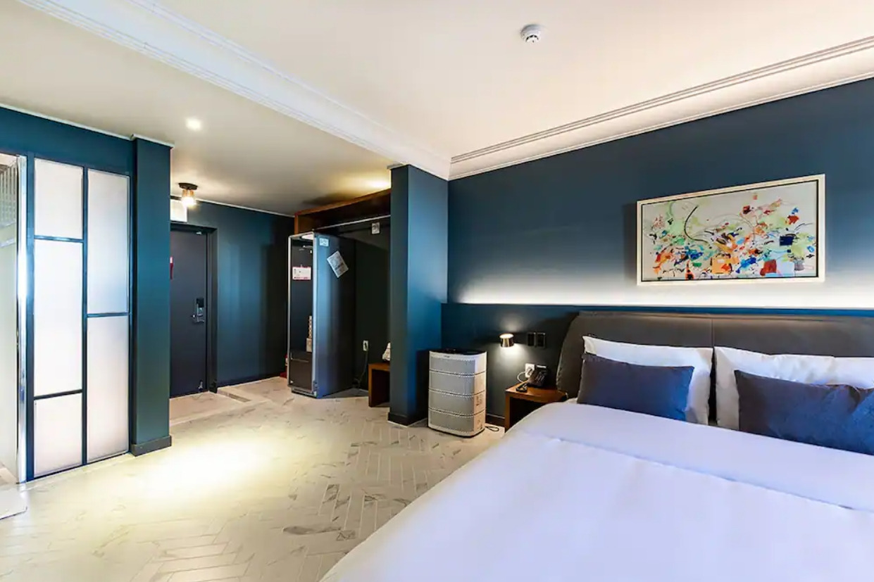 감각적인 컬러가 포인트가 된 디럭스 스파 더블룸은 객실은 여유롭게 혼캉스를 즐기러 온 여행자 또는 커플 여행자에게 인기가 높은 객실이다.
