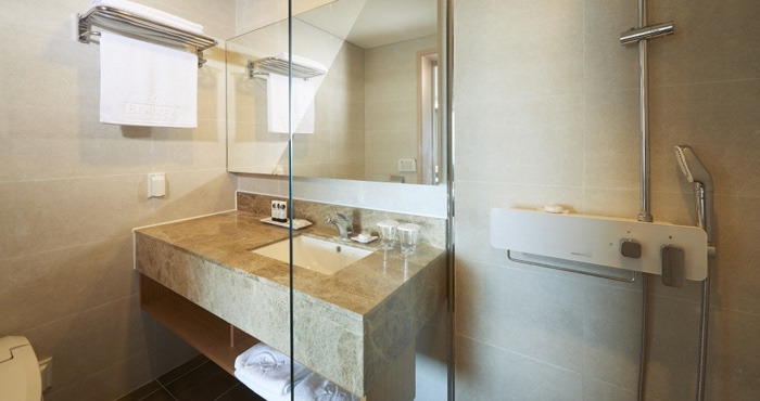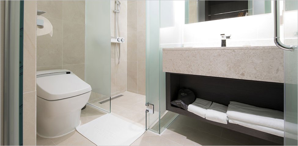 욕실에는 샤워부스와 비데가 설치되어 있다. 어메니티로는 샴푸, 린스, 바디젤, 비누, 헤어드라이기, 수건이 준비되는데, 치약과 칫솔, 면도기는 개별적으로 준비해야 한다.