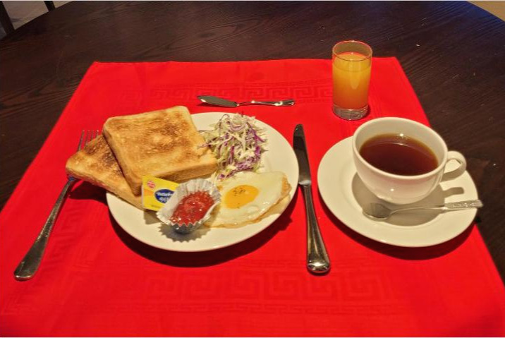 아침 식사는 1층 로비 카페에서 오전 8시부터 9시 30분 사이에 셀프 뷔페로 제공된다. 제주산 신선한 샐러드, 계란 프라이, 토스트, 원두커피, 감귤주스 등을 단돈 4,500원에 맛볼 수 있다.