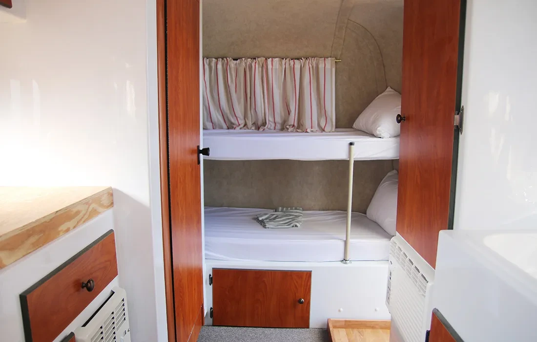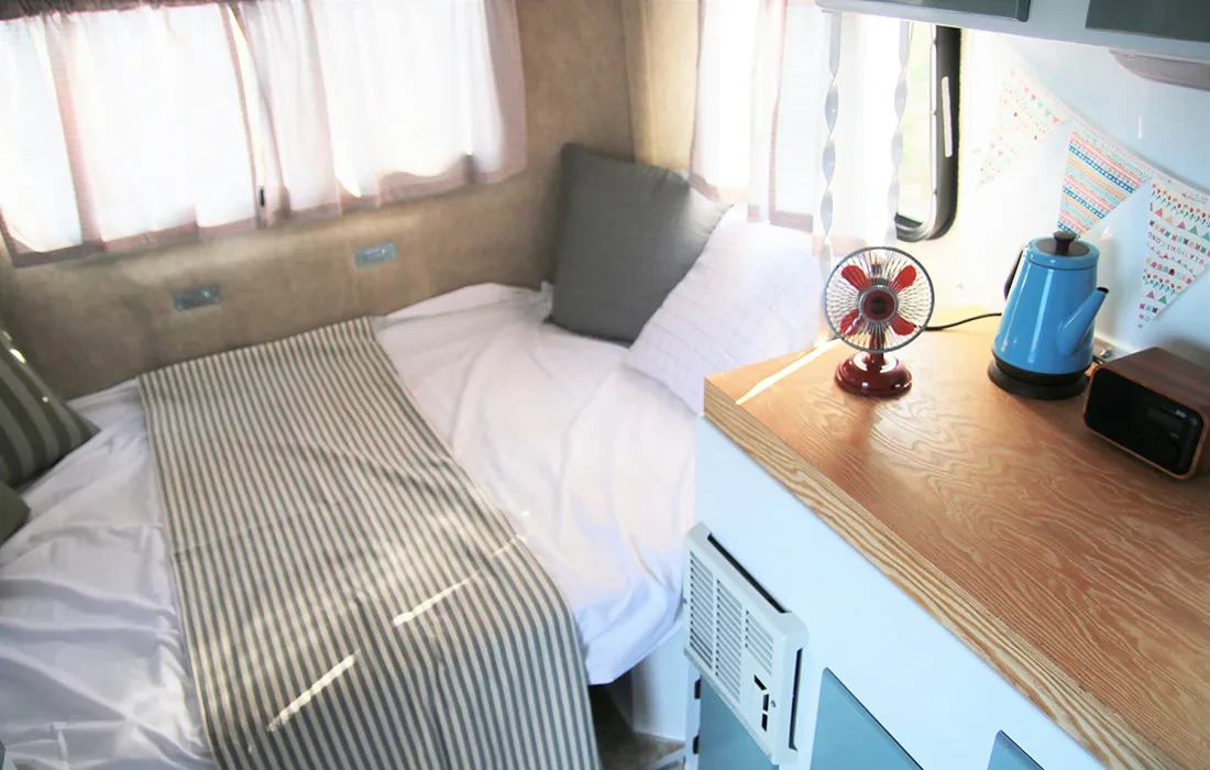 가족은 물론, 커플에게도 인기가 높다. 영국 감성 텐트를 갖춰놔, 글램핑까지 한 번에 즐길 수 있다. 내부에는 2인용 베드 1개와 1인용 베드 2개, 에어컨, 소형 냉장고, 전기 포트, 난방기 등을 구비되어 있다.