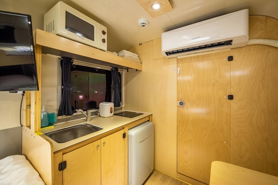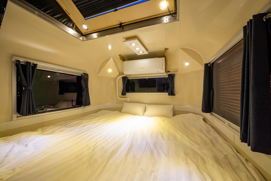 더설렘글램핑은 깡통/VIP/큐브글램핑, 오토캠핑존까지 4가지 타입을 제공하고 있다. VIP 카라반은 깡통 객실보다 넓어 가족 여행객에게 추천하며. 큐브글램핑은 독특한 복층 구조로 이색 캠핑에 딱이다. 깡통 1 ~ 7호를 제외한 모든 객실에는 개별 화장실&샤워실이 있다.