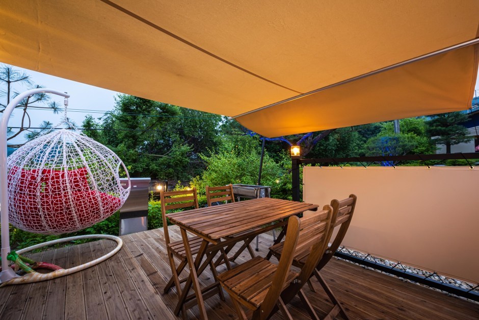 개별 테라스에서는 맛있는 바비큐와 불멍 타임도 즐길 수 있다. 숯과 그릴 이용 시 30,000원 / 화로대 및 장작은 20,000원의 요금이 추가된다. 전 객실에 인터폰이 설치되어 있어 편하게 소통이 가능하다.