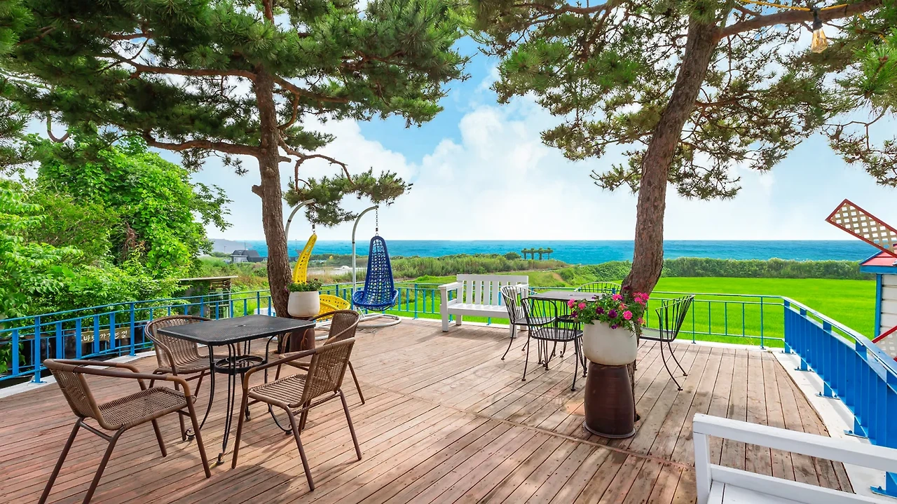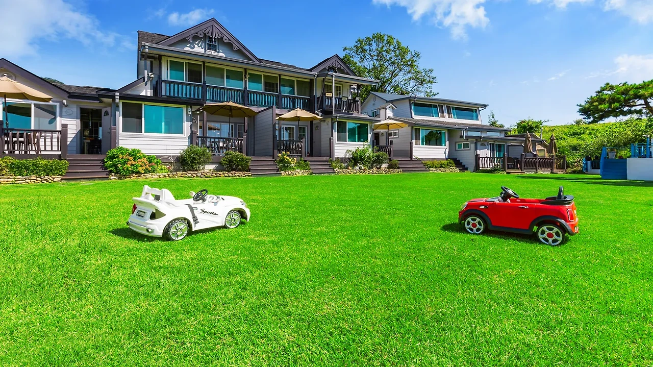 넓은 잔디정원도 있어 아이들이 마음껏 뛰어놀 수 있다. 배드민턴을 치거나 미니 축구를 하기에도 좋다. 정원 한편에는 노천카페도 있다. 아름다운 강화도의 낙조와 함께 힐링의 시간을 가져보자