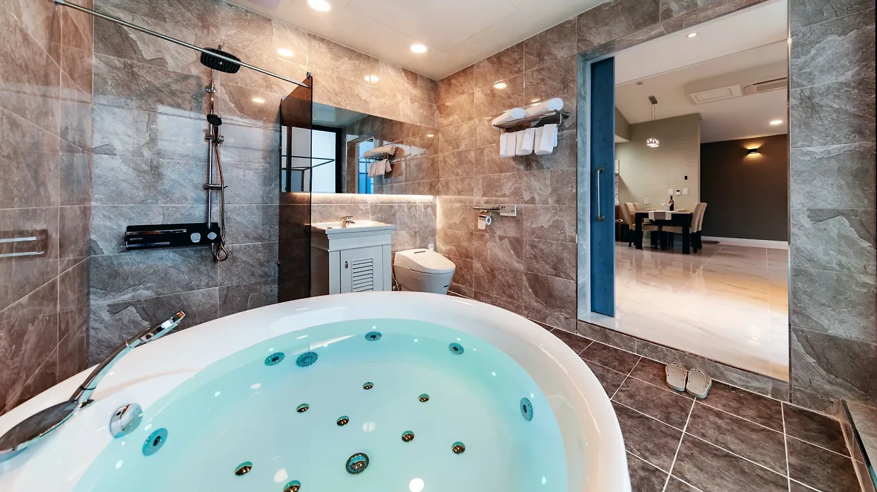 테라스에는 넓은 개별 온수 수영장과 대형 제트스파도 준비돼 있다. 탁 트인 바깥 풍경과 함께 물놀이를 즐길 수 있다.