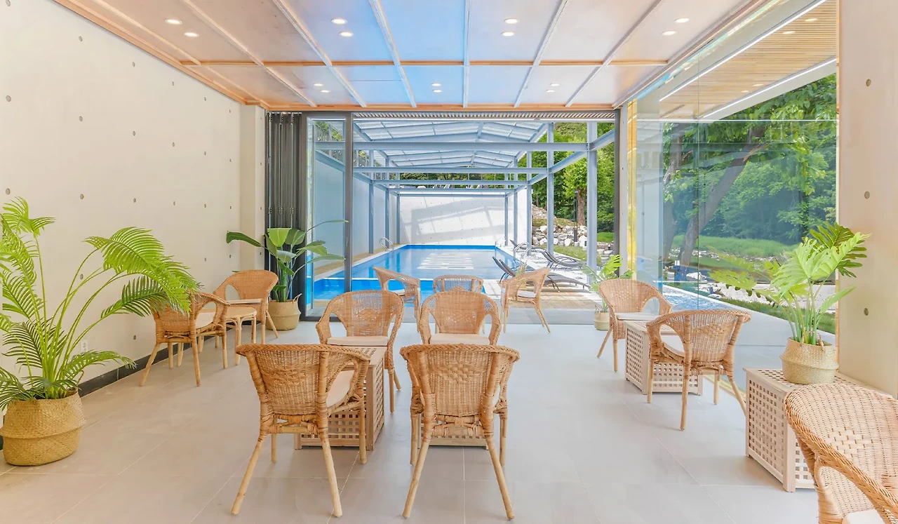 풀빌라 객실에는 프라이빗 개별 수영장도 준비돼 있다. 실내라 날씨와 상관없이 언제나 즐거운 물놀이가 가능하다. 스파도 설치돼 있어 여유로운 시간을 보낼 수 있다. 테라스에서 바비큐도 가능해 맛있는 식사를 즐길 수 있다.