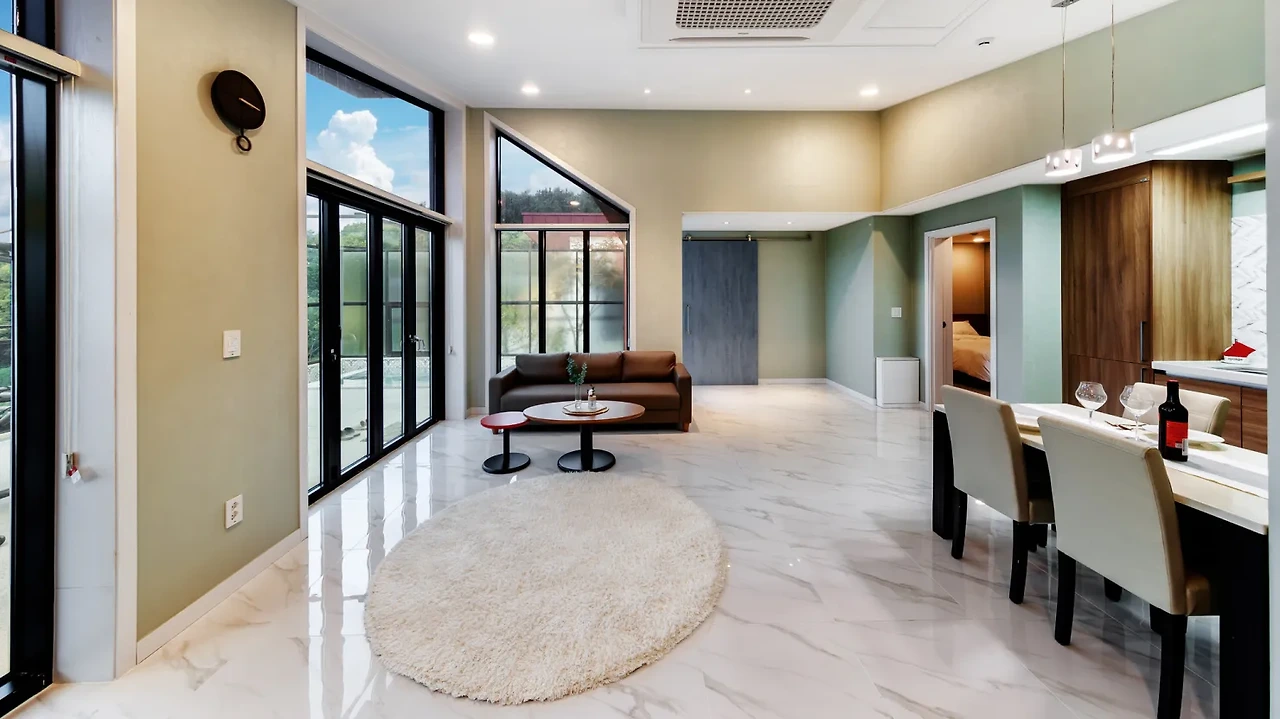 모던하고 세련된 분위기를 풍기며 4인 가족도 충분히 수용할 수 있는 넓은 면적과 깔끔한 컨디션을 갖추고 있다.