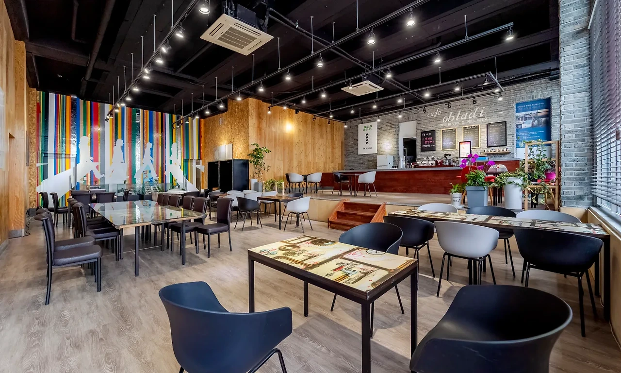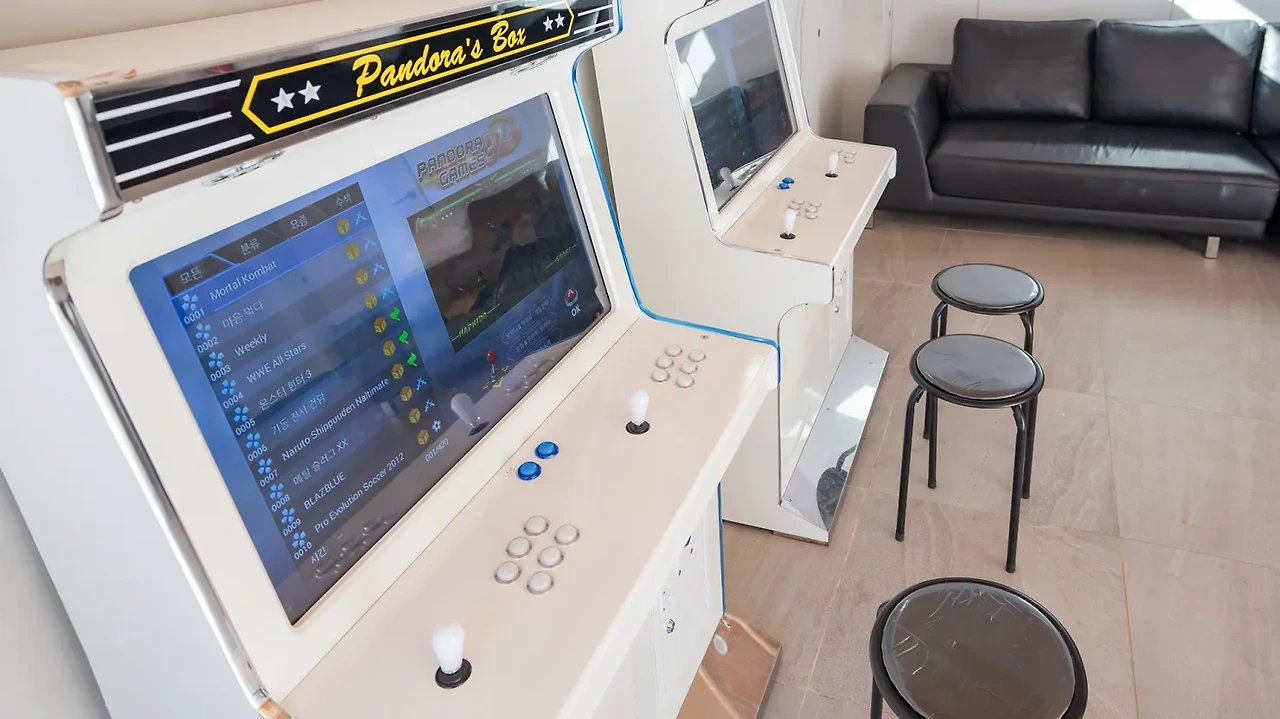 수영장 바로 옆에는 2층으로 된 카페도 운영하고 있다. 편안하게 커피를 마시거나, 레트로 오락기도 즐길 수 있다.