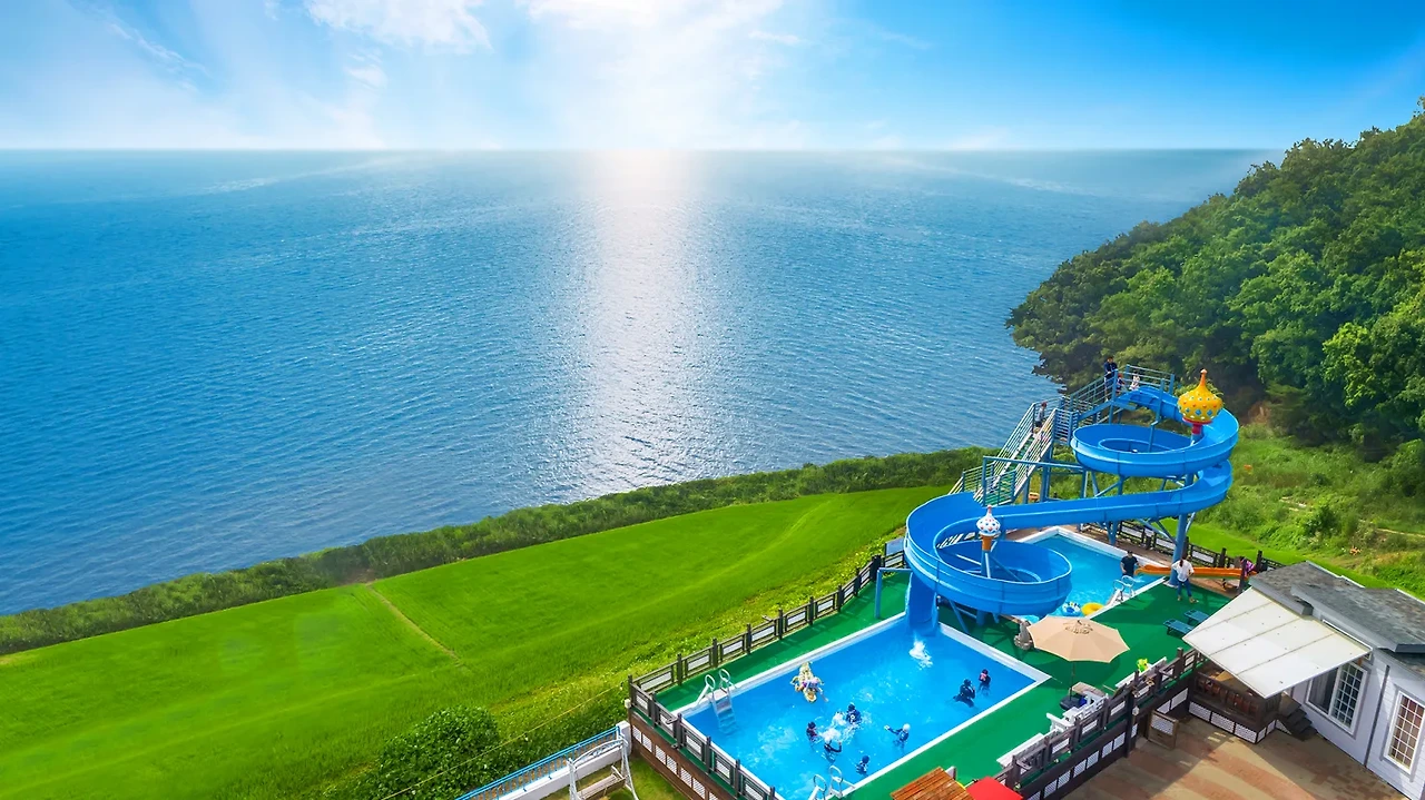 플로망스펜션은 야외 워터슬라이드 수영장도 운영하고 있다. 올해는 9월 15일까지 이용 가능하다. 아이들은 물론 어른들도 신나게 즐길 수 있는 가족풀빌라펜션이다.