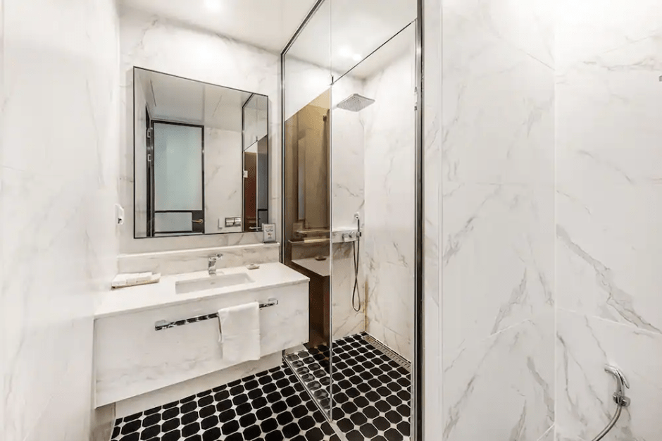 넓은 로비 라운지에서는 입·퇴실 전후로 휴식 취하기 딱이다. 전 객실 넷플릭스를 시청할 수 있고, 공기청정기도 비치해 놨다. 프런트에서는 노트북도 빌릴 수도 있다. 일부 객실에는 스파 시설까지 준비되어 있다.